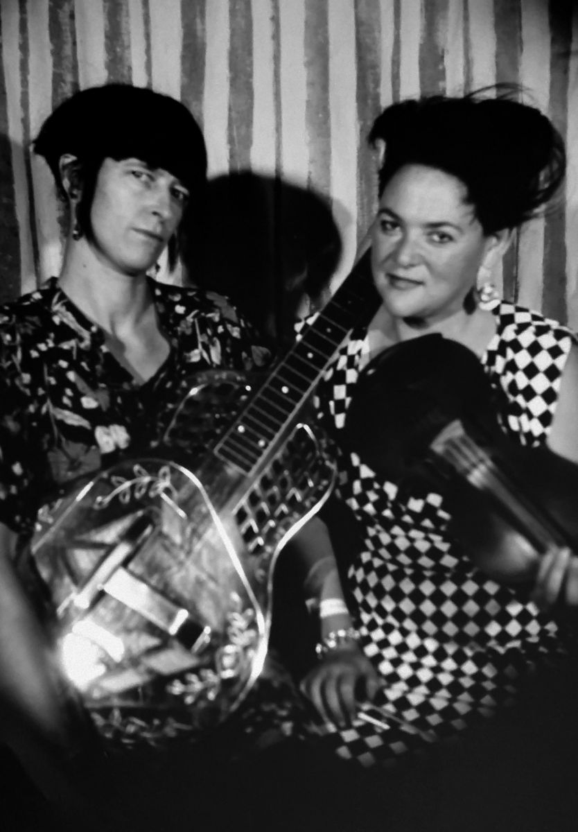 The Binoculars, of Brooklyn, New York, is the duo of longtime pals Kaethe and Chloë. Musically, they peer at long lost tunes from around the world using fiddle, guitar, lap steel, and laser vocal harmonies. Their collaborations span mediums-- from textile (leather, collected fabrics) to edible (fermentation, popcorn), and now Crankies, always bringing their unique stamp and care for handmade storytelling.