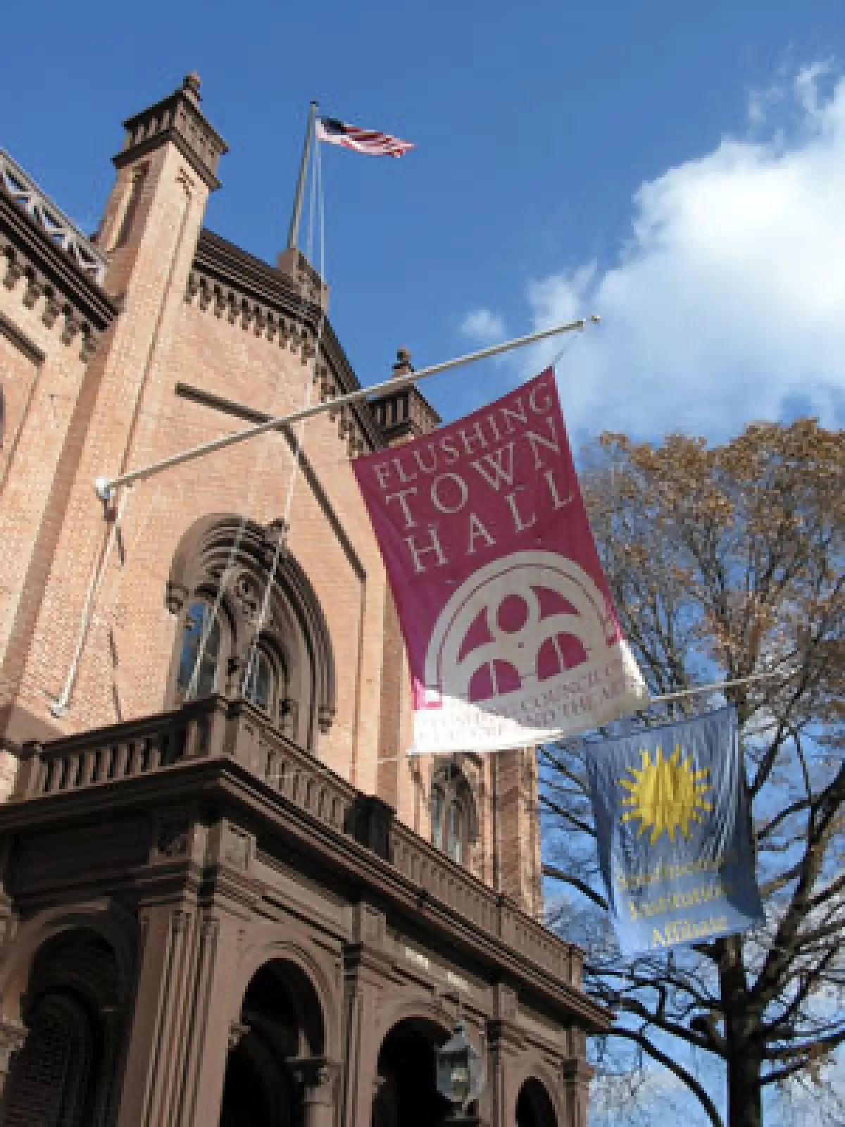 Flushing Town Hall acknowledges that we are on the traditional land of the Matinecock People, one of the original tribes of New York, and the first people of Flushing, Queens. The Matinecock continue to live and work on this land to this day. Flushing Town Hall honors their elders who have stewarded this land throughout generations.