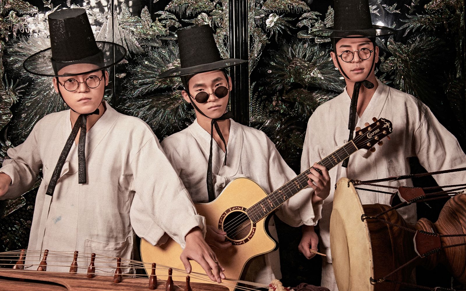 Band Members: Cho Sungyoon on guitar; Kwon Hyochang on janggu (hourglass drum) and kkwaenggwari (small gong); and Nam Seonghun on ajaeng (bowed zither).